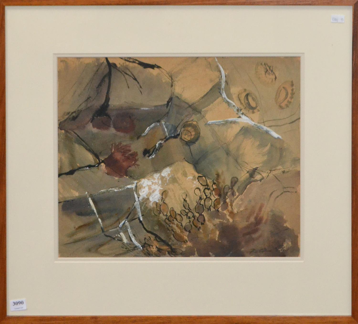 PATRICIA GILES, LANDSCAPE, INK ON PAPER, 33 X 40CM, FRAME: 55 X 61CM