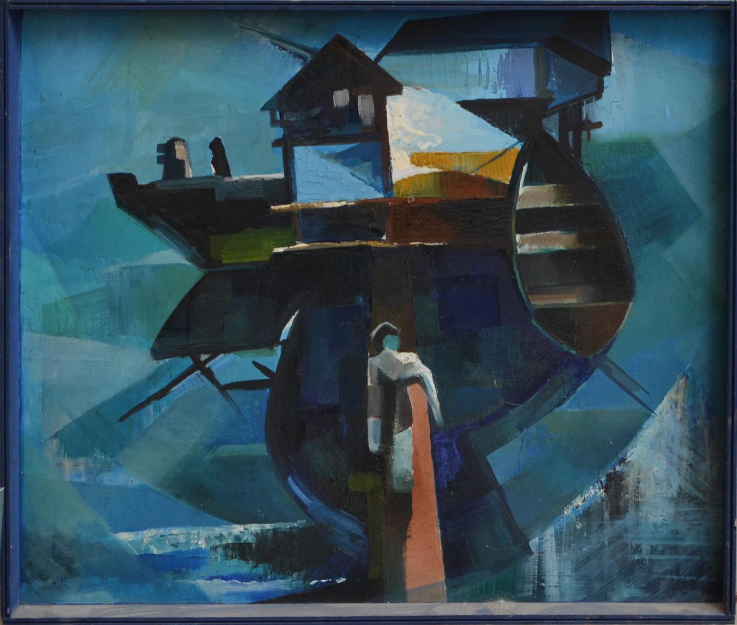 ARTIST UNKNOWN, BLUE SHIP ABSTRACT, OIL ON BOARD, 58 X 69CM, LEONARD JOEL DELIVERY SIZE: MEDIUM