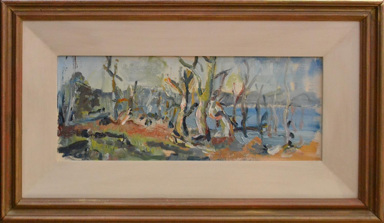 ELIZABETH PRIOR, LANDSCAPE, OIL ON CANVASBOARD, 15 X 39CM, LEONARD JOEL DELIVERY SIZE: SMALL