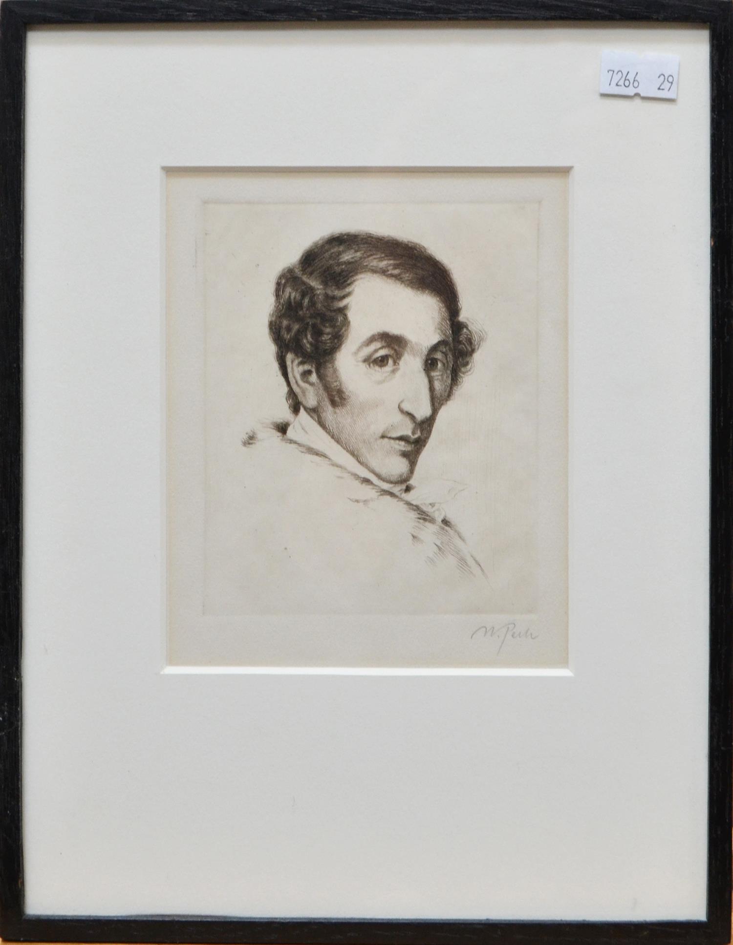 A GROUP OF FOUR PORTRAITS, SIGNED PECK, ENGRAVINGS, 11.5 X 9CM (EACH)