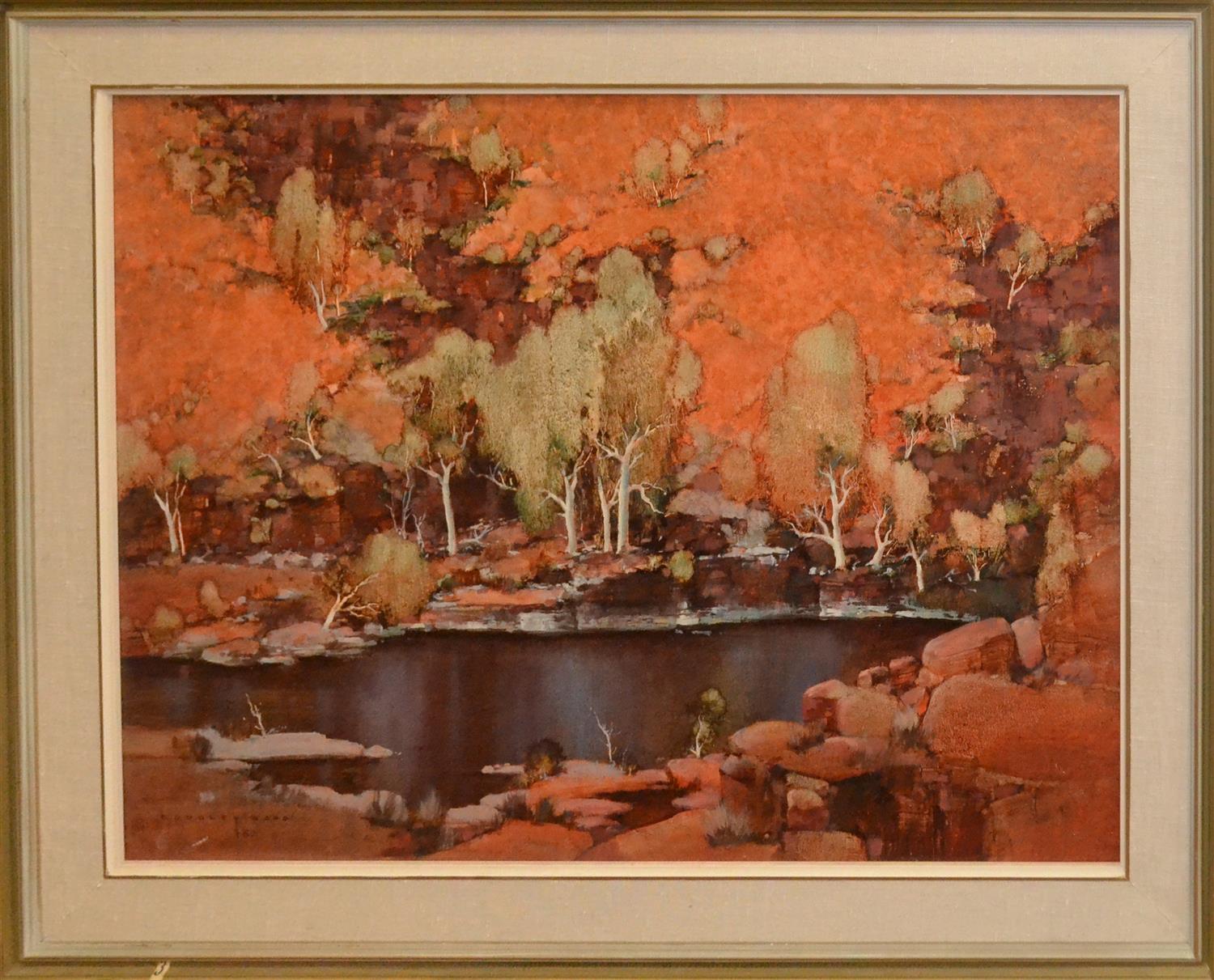 CLIFFORD DUDLEY WOOD, STUDY IN RED, DALES GORGE, WA 1967, OIL ON BOARD, 70 X 90CM, LEONARD JOEL DELIVERY SIZE: MEDIUM