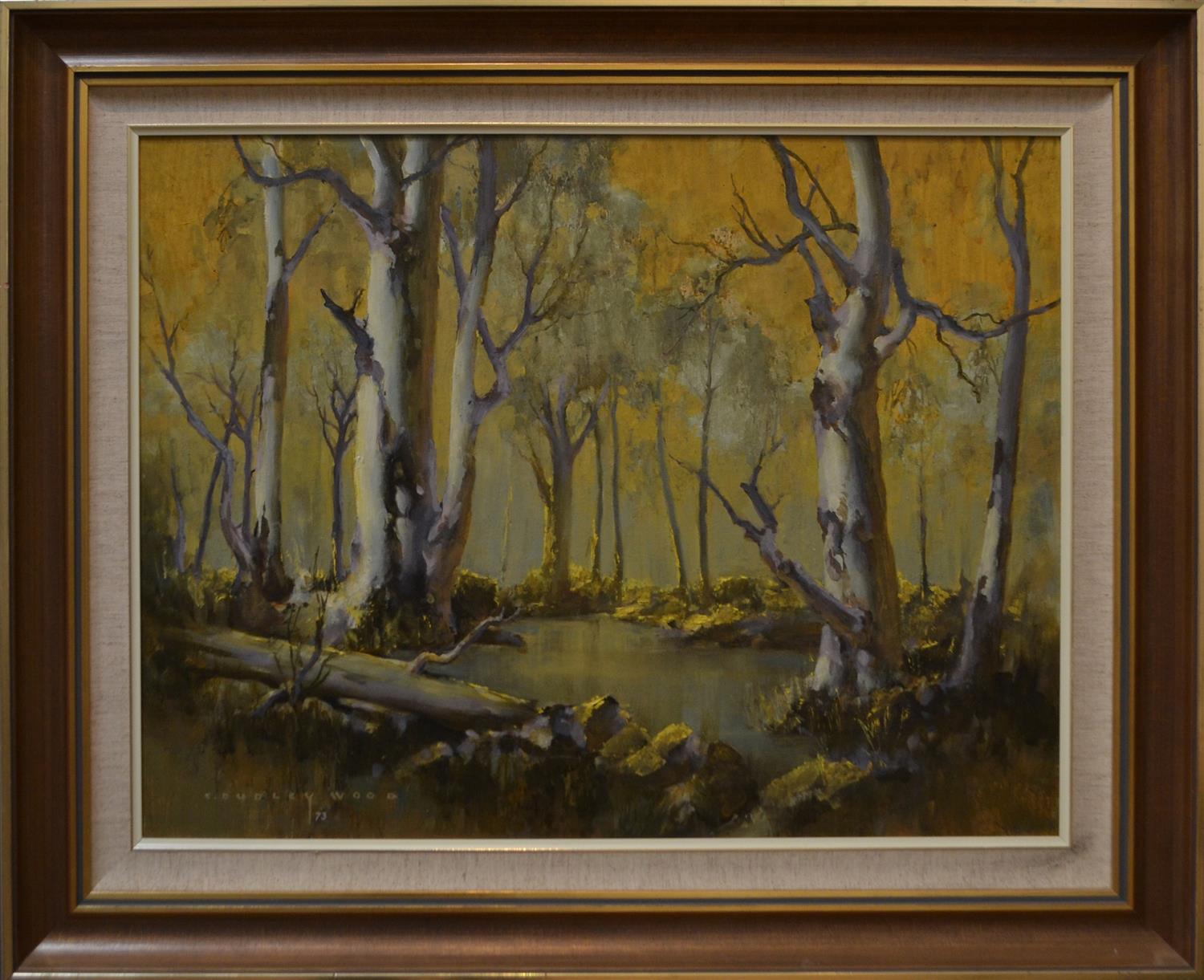 CLIFFORD DUDLEY WOOD, BARMAH LAKES, OIL ON BOARD, 55 X 70CM, LEONARD JOEL DELIVERY SIZE: MEDIUM