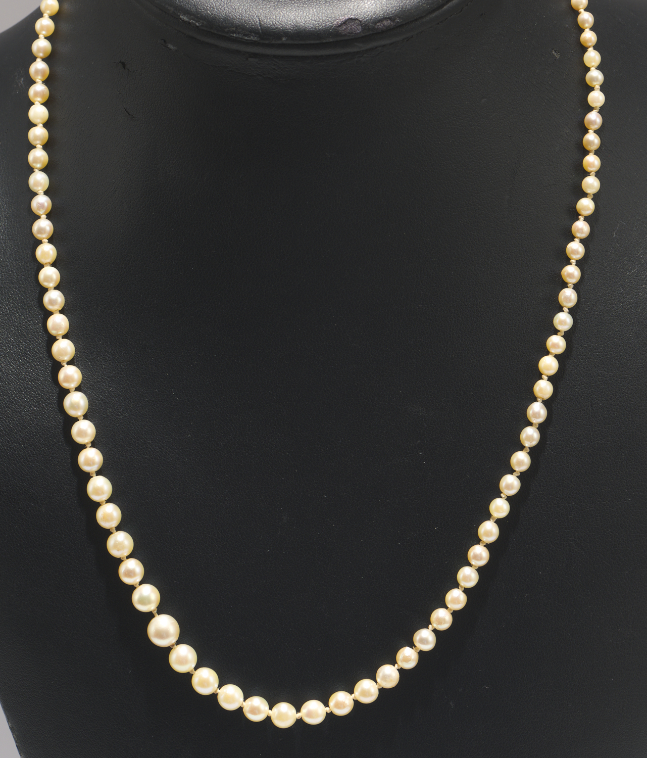 A STRAND OF CULTURED PEARLS TO A GOLD CLASP