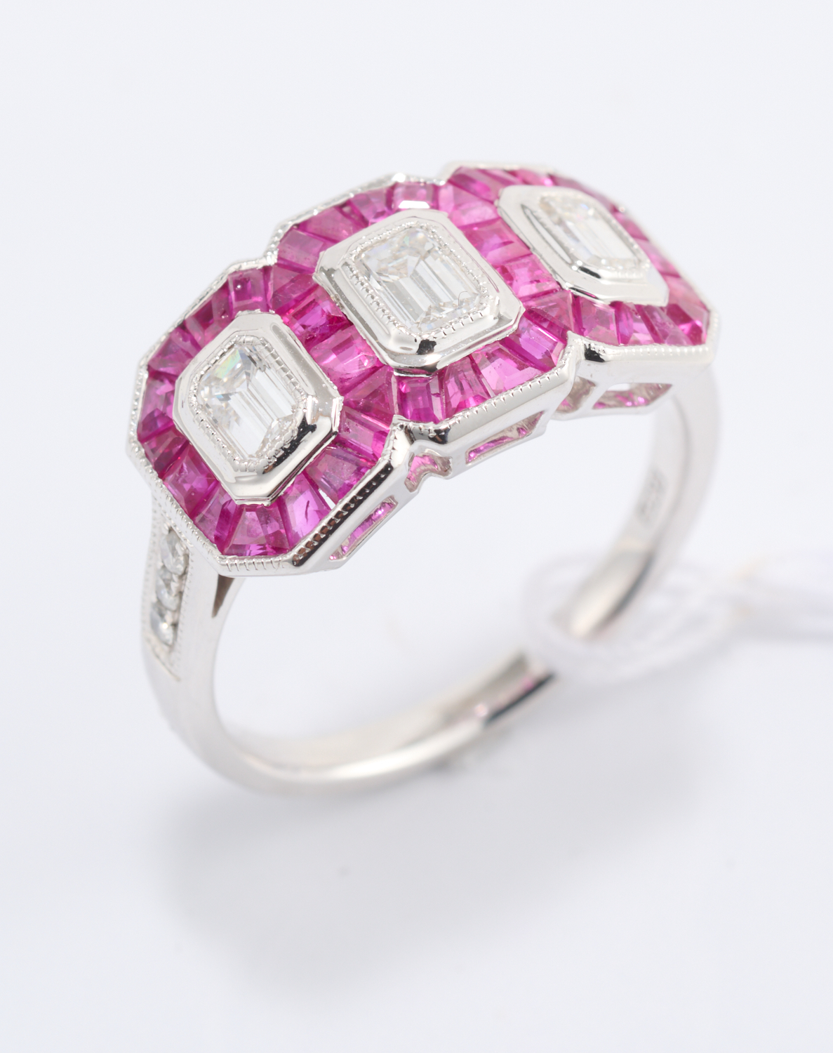 A RUBY AND DIAMOND SET RING IN 18CT GOLD, RING SIZE M, 4.0GMS