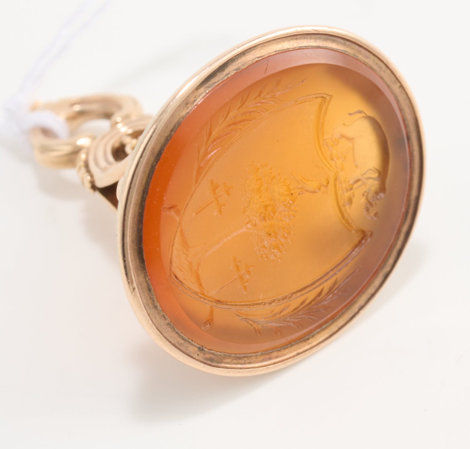 A CARNELIAN SEAL IN 13CT GOLD (XRF TESTED), 8.0GMS