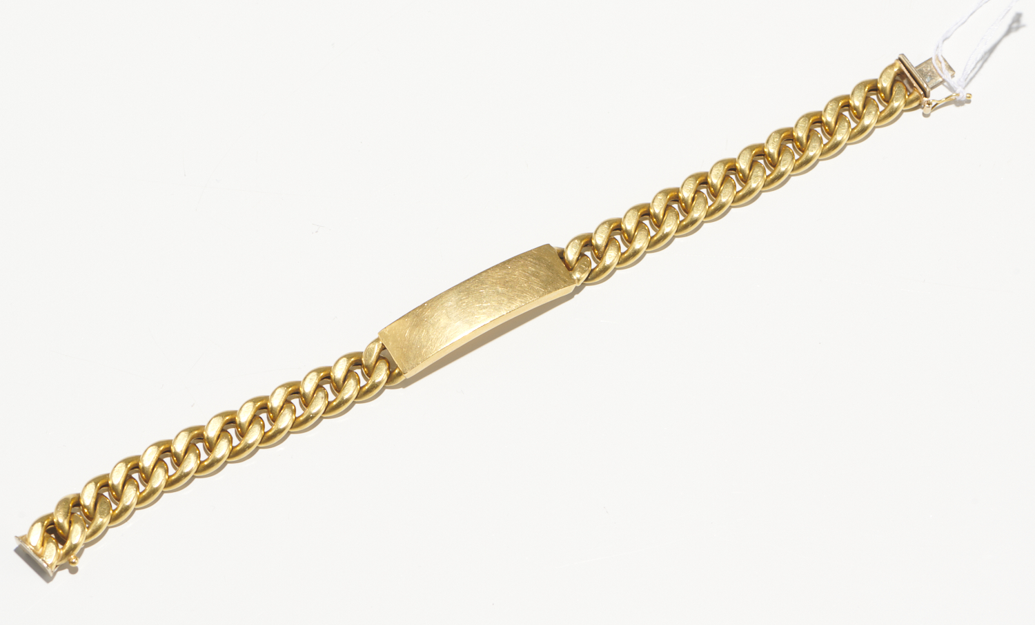A CURBLINK BRACELET IN 18CT GOLD, TOTAL LENGTH 20.5CM, 34.6GMS
