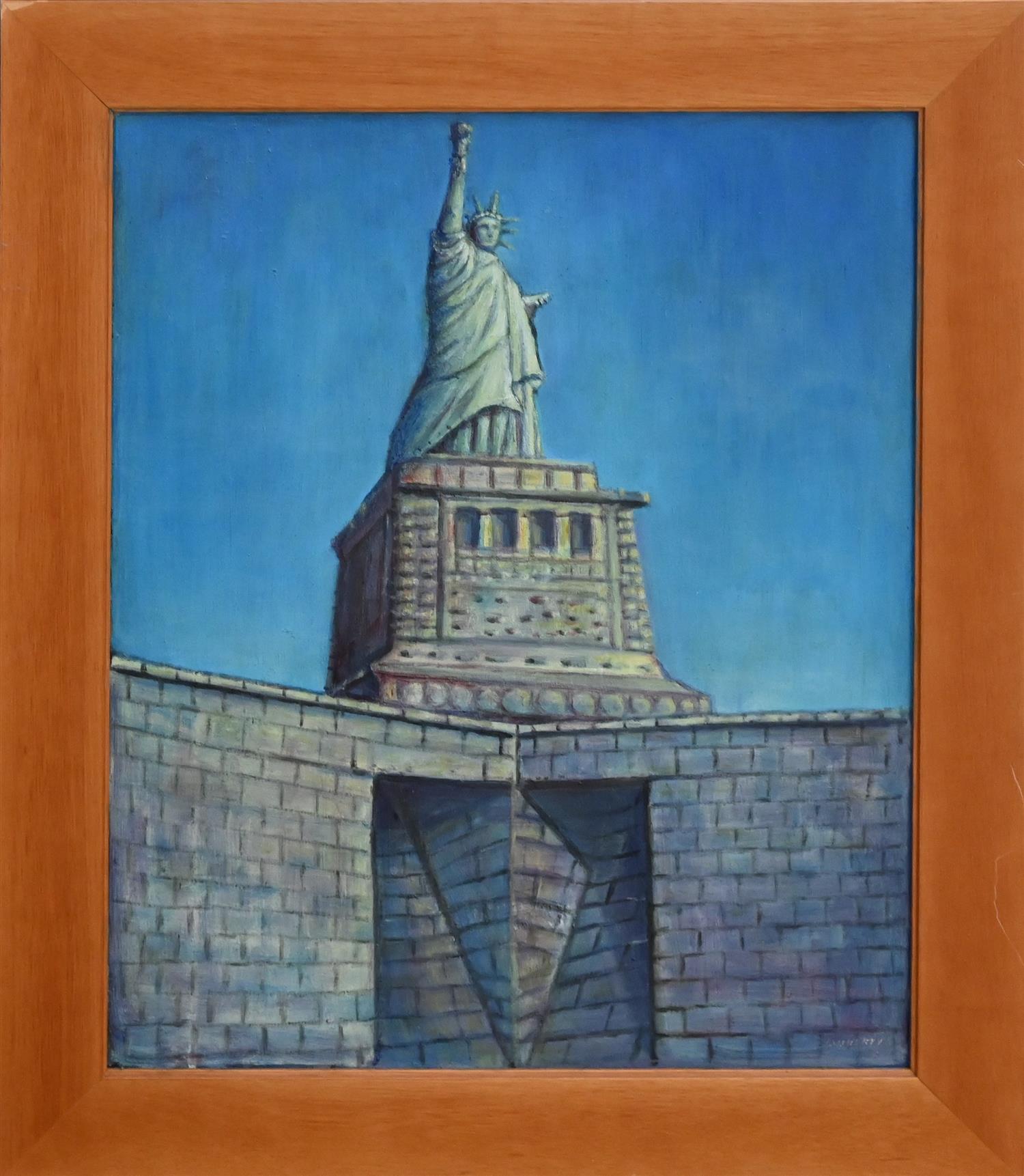 MICHAEL DOHERTY, VIEW FROM LIBERTY ISLAND 2002, OIL ON CANVAS, 60 X 50CM