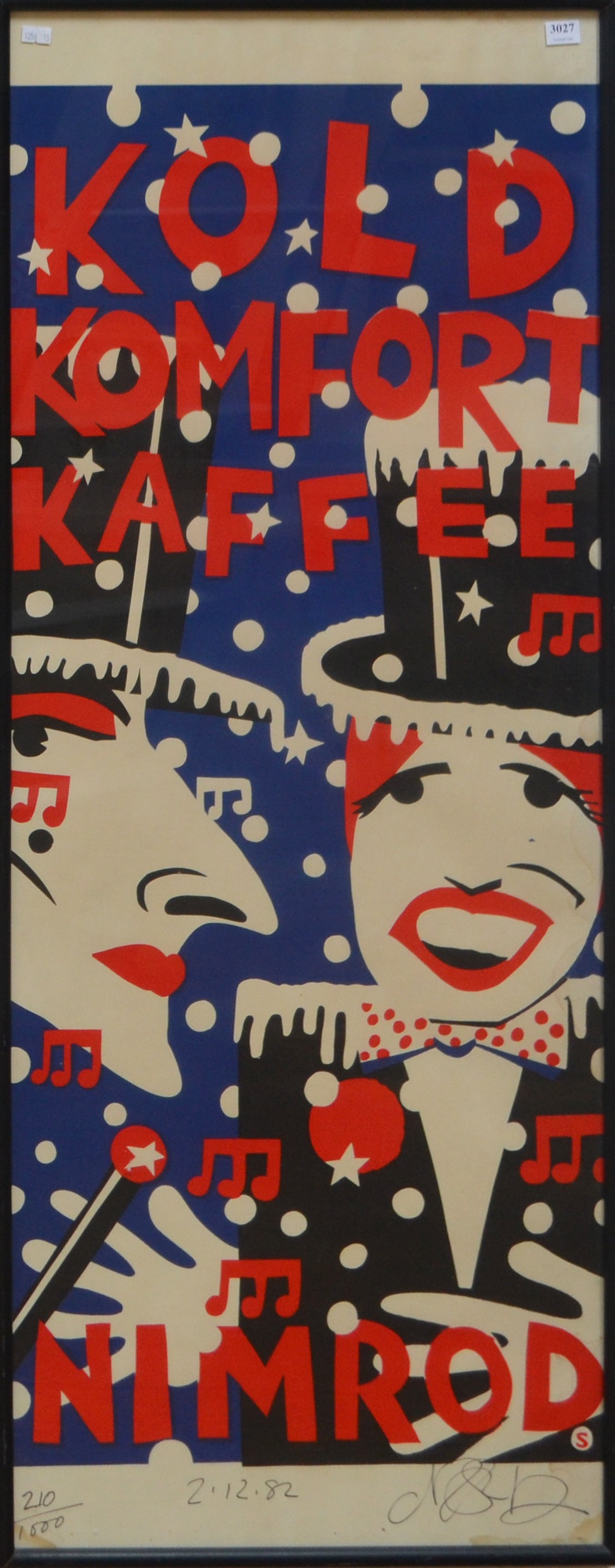 MARTIN SHARP, KOLD KOMFORT KAFFEE (NIMROD SERIES), SCREENPRINT ED. 210/1000, 114 X 44CM, FRAME: 117 X 47CM, CONDITION: MINOR WATER DAMAGE UPPER RIGHT, MOSTLY FROM THE BACK