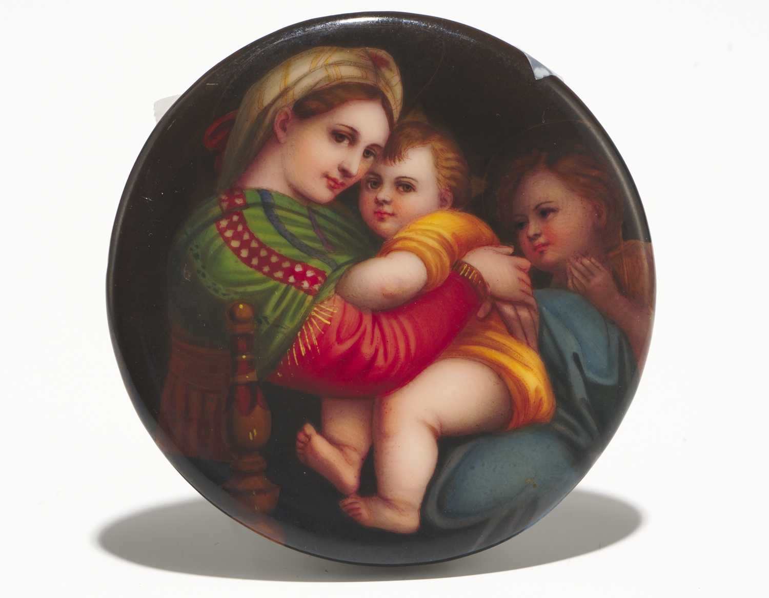 AN ANTIQUE PORCELAIN PAINTED PLAQUE OF MADONNA AND CHILD, STAMPED FIRENZE WITH A FLEUR-DE-LIS