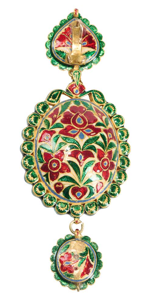 A 9CT GOLD, SILVER, DIAMOND AND ENAMEL PENDANT, NORTHERN INDIA