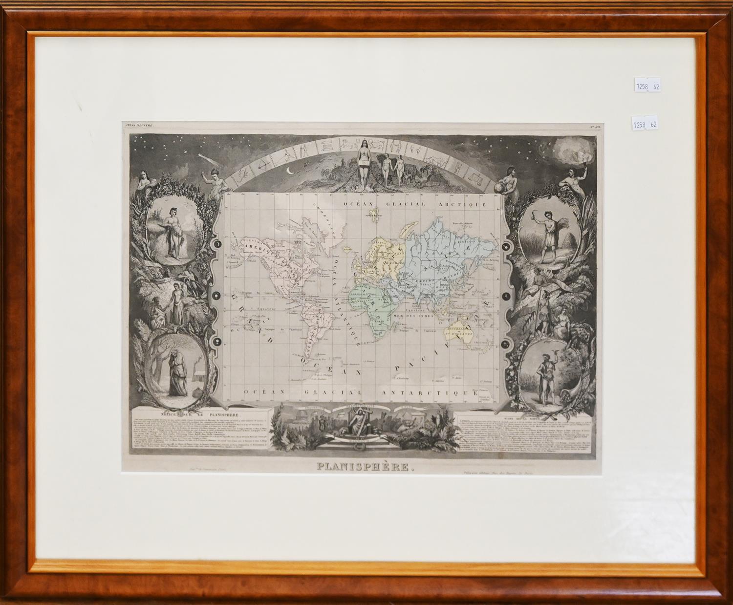 PIERRE EMILE LE VASSEUR, PLANISPHERE C. 1846, ENGRAVING, 30 X 41CM