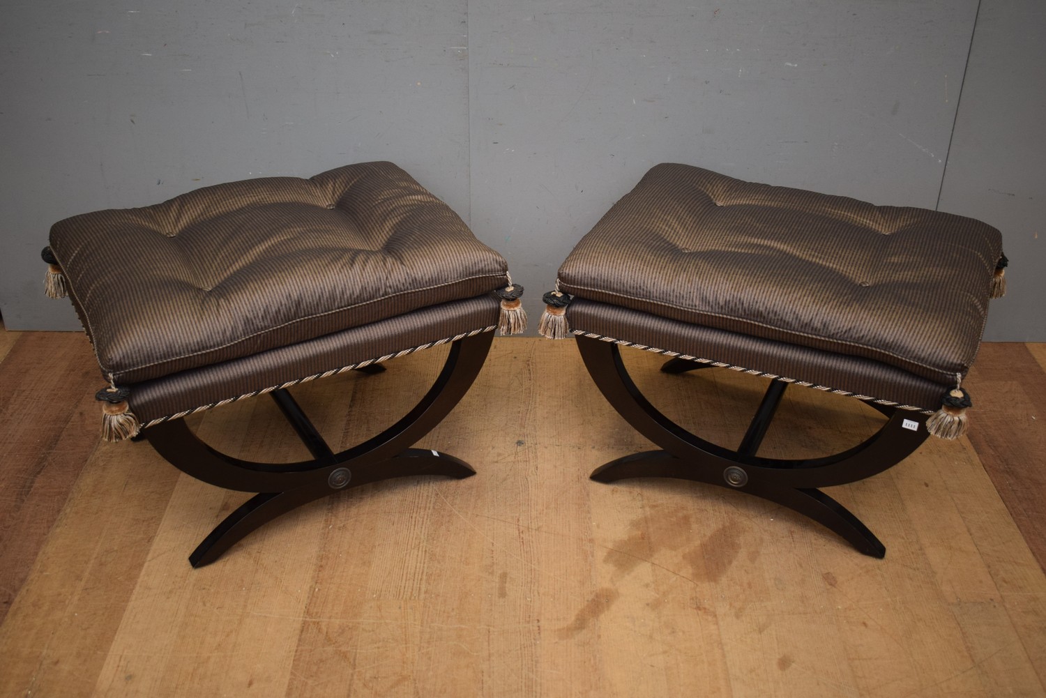 A PAIR OF EMPIRE STYLE OTTOMANS ( 54H X 80W X 60D CM) (LEONARD JOEL DELIVERY SIZE: LARGE)