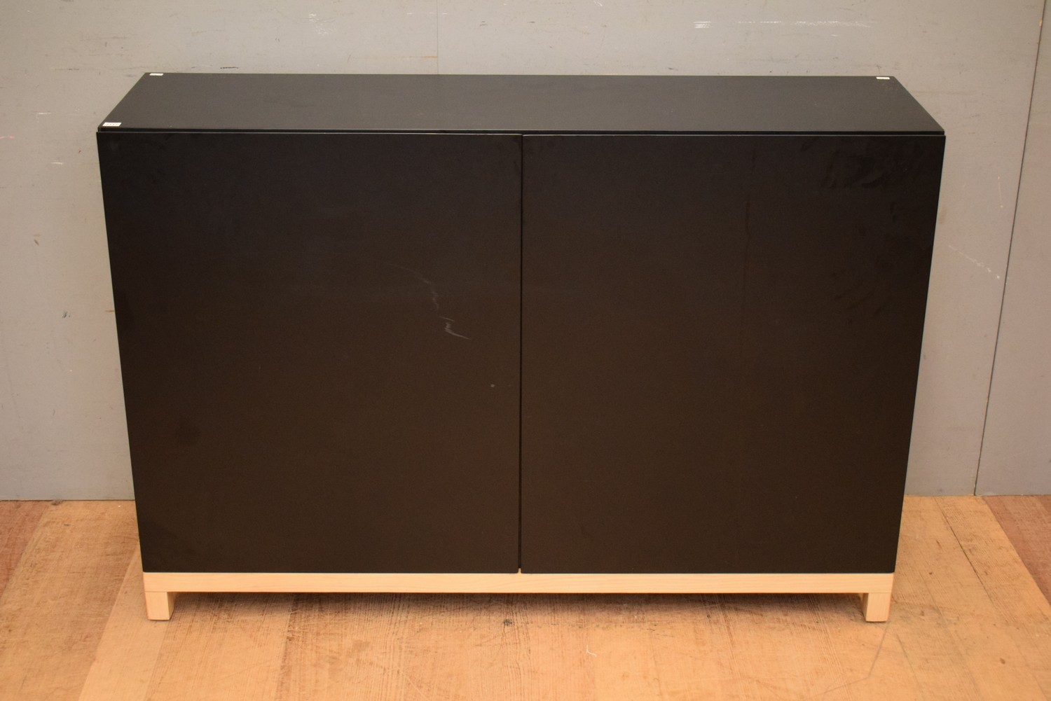 A CONTEMPORARY TWO DOOR SIDEBOARD (A/F) ( 91H X 132W X 38D CM) (PLEASE NOTE THIS HEAVY ITEM MUST BE REMOVED BY CARRIERS AT THE CUSTOMER'S EXPENSE. LEONARD JOEL STAFF CANNOT ASSIST CARRYING THIS ITEM) (X-LARGE ITEM)