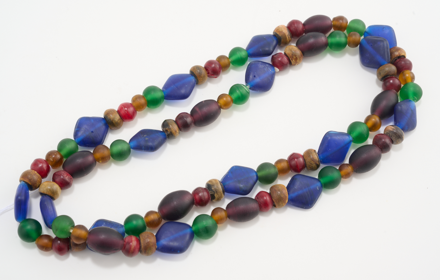 A FROSTED GLASS AND WOOD NECKLACE, LENGTH 360MM