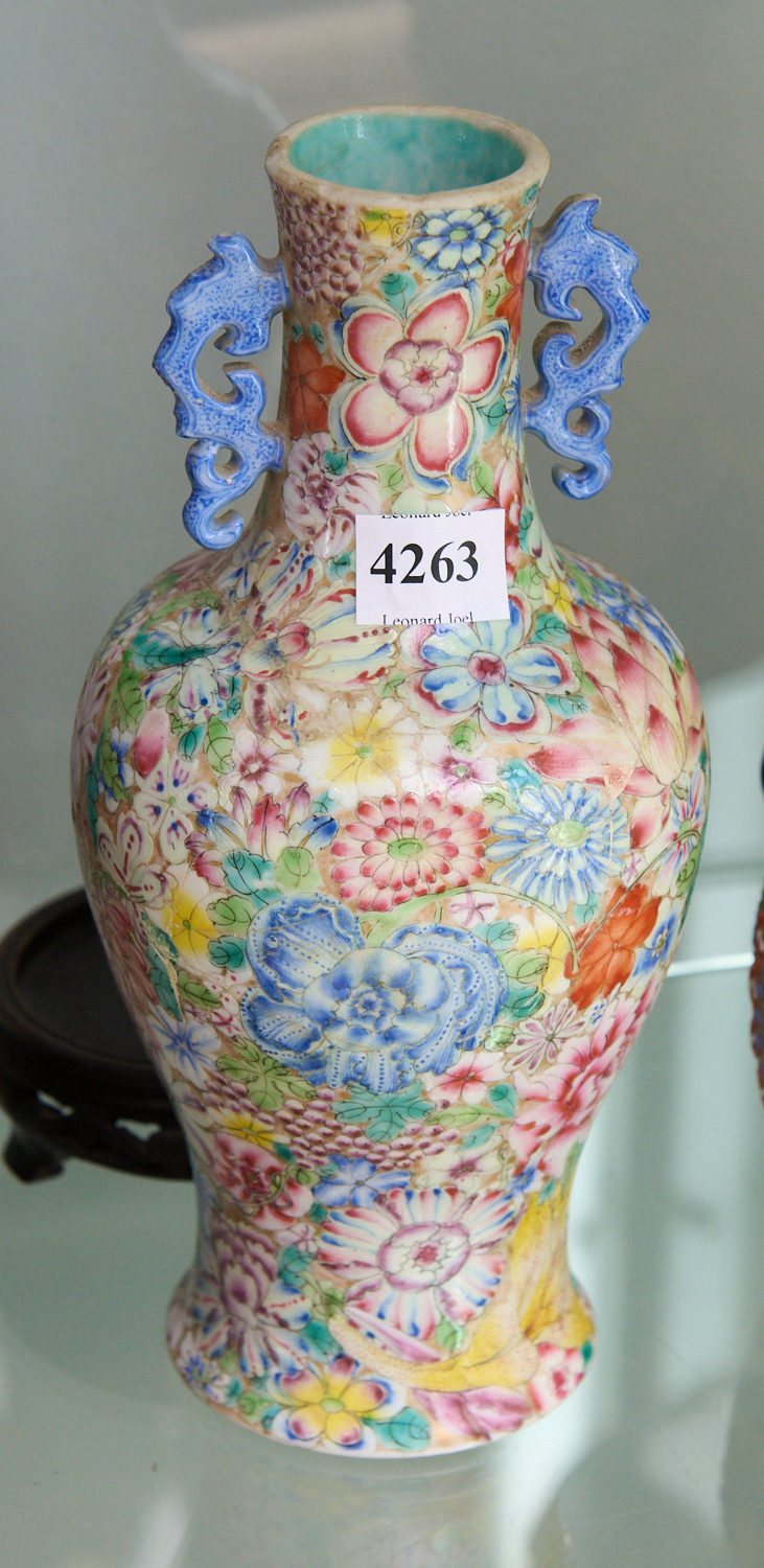 A CHINESE FAMILLE ROSE VASE, TRUNCATED H.22.5CM, LEONARD JOEL LOCAL DELIVERY SIZE: SMALL