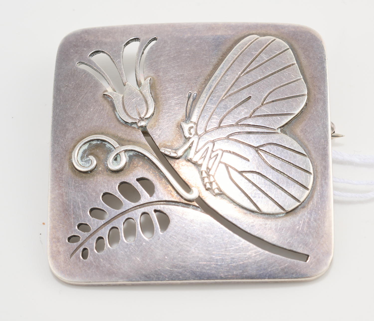 A BUTTERFLY BROOCH BY GEORG JENSEN IN STERLING SILVER, N.294, 40 x 40MM