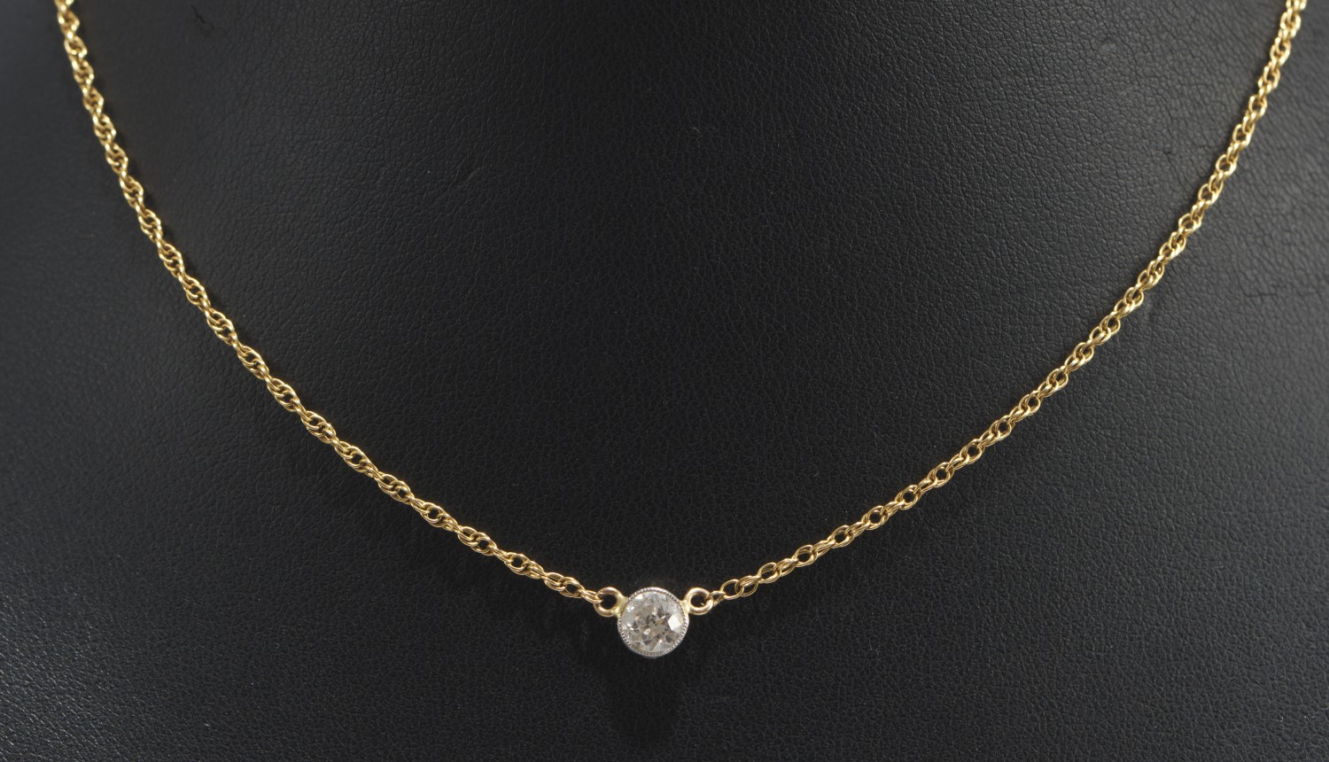 A DIAMOND NECKLACE IN 18CT GOLD, DIAMOND WEIGHING AN ESTIMATED 0.57CTS, 2.9GMS, 36CM LENGTH