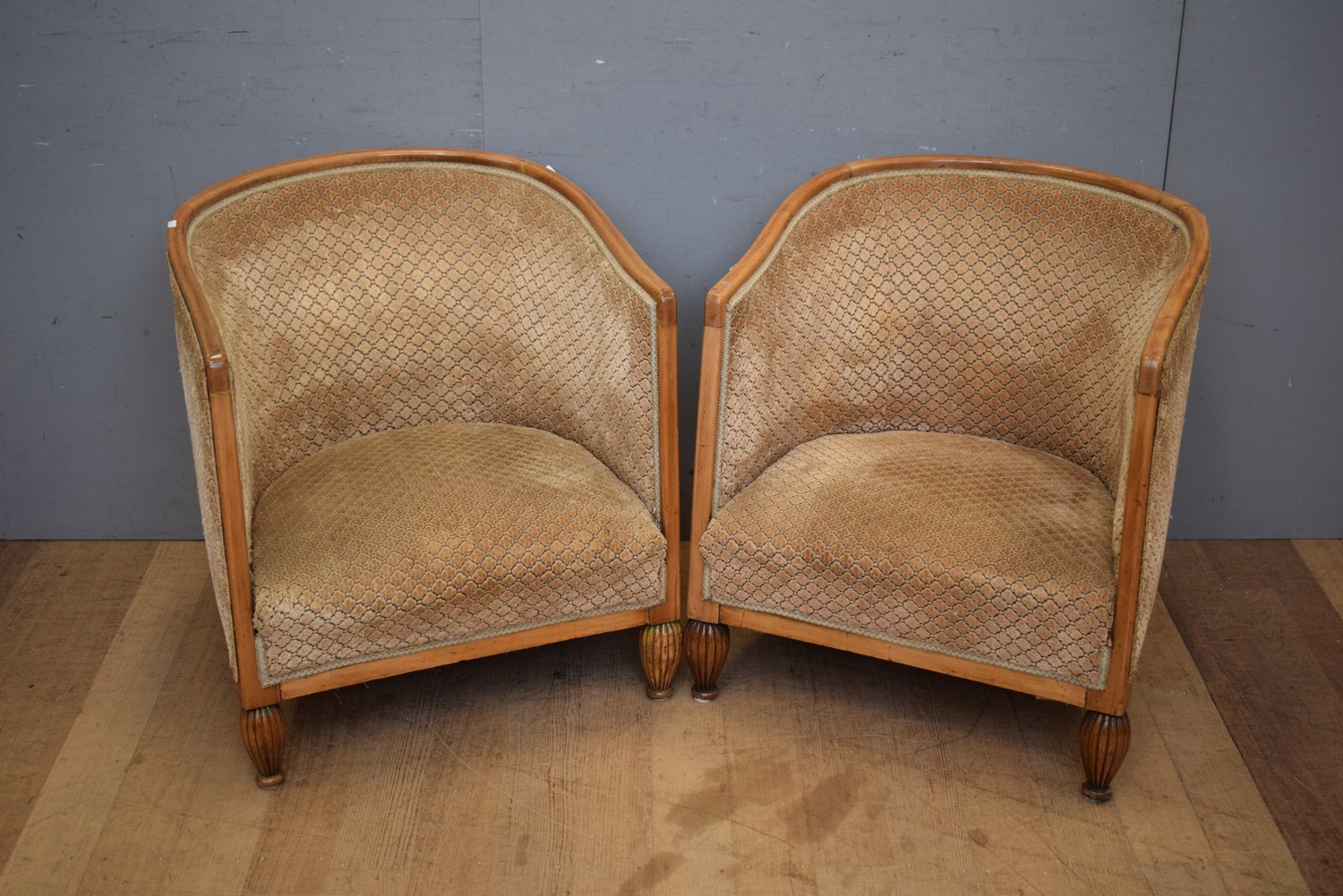 A PAIR OF FRENCH ART DECO TUB CHAIRS, C 1925 (A/F) (72H x 65W x 64D CM) (LEONARD JOEL DELIVERY SIZE: LARGE)
