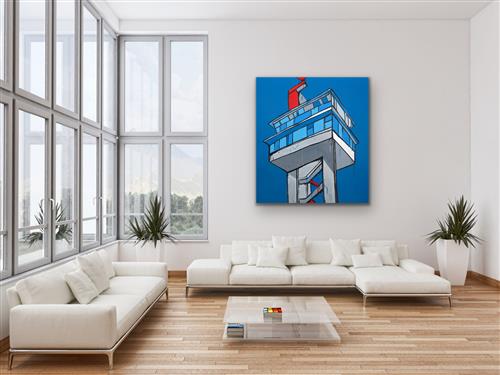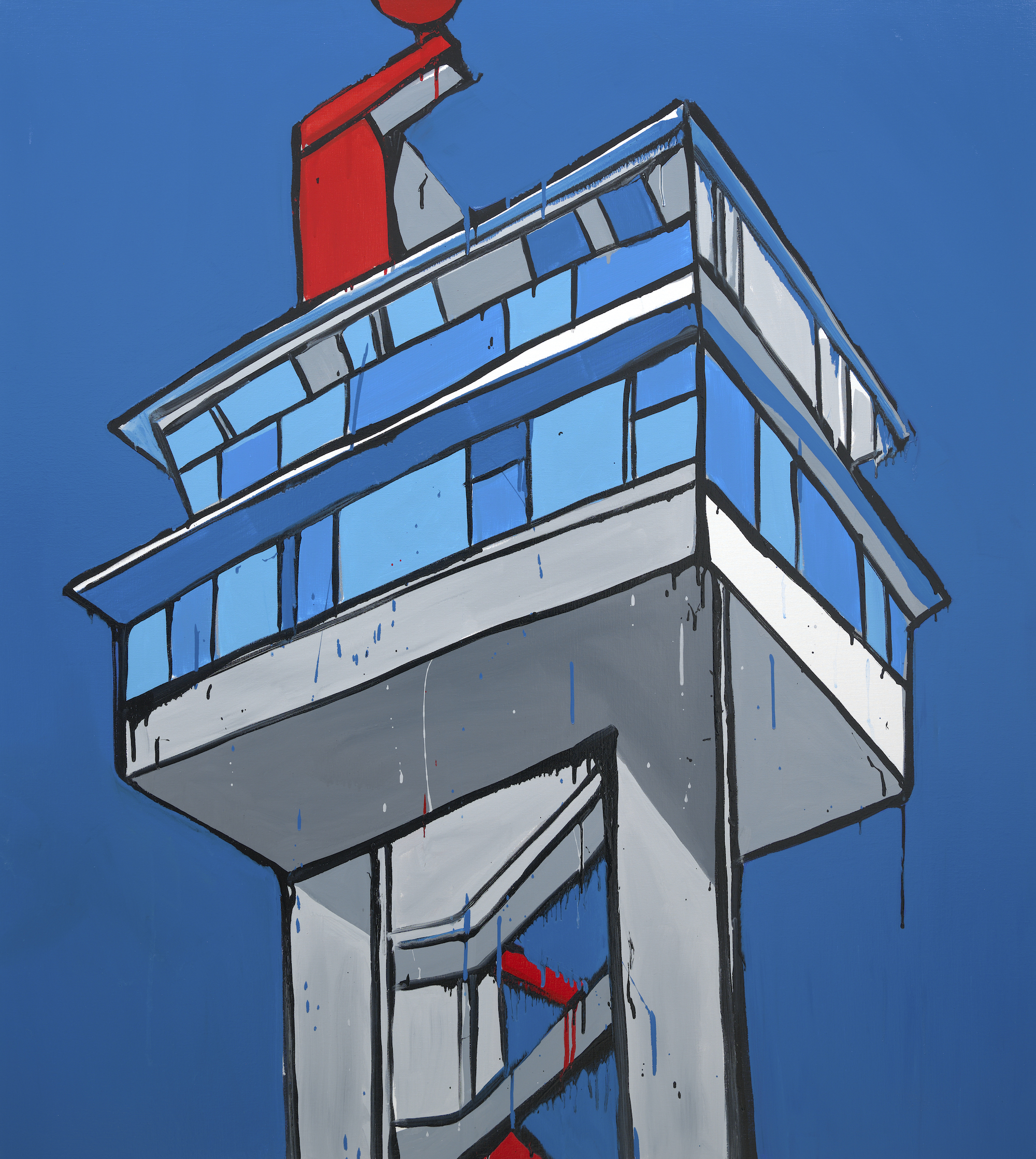 signed, titled and dated verso: JASPER KNIGHT/ 'DOCKLANDS/ CONTROL/ TOWER' 2015