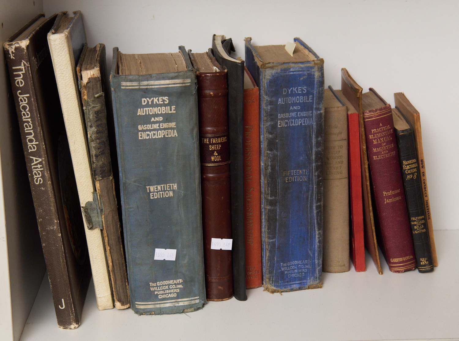 A SHELF OF BOOKS MANUALS ETC, LEONARD JOEL LOCAL DELIVERY SIZE: SMALL. The Rodney Permezel Collection