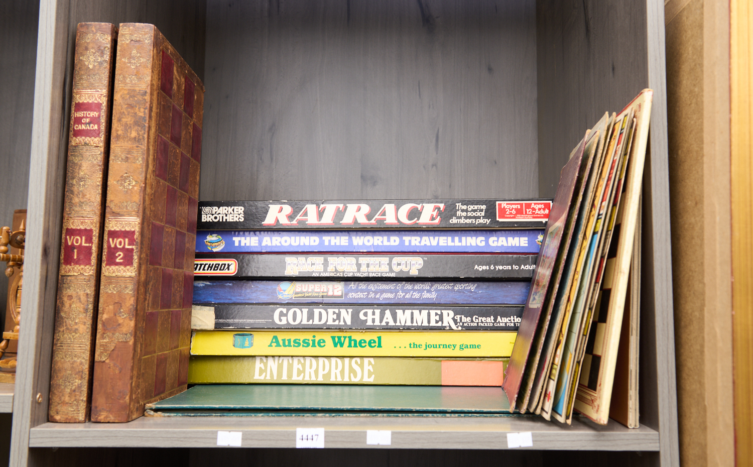 A SHELF OF VINTAGE BOARD GAMES AND CHESS, LEONARD JOEL LOCAL DELIVERY SIZE: SMALL. The Rodney Permezel Collection