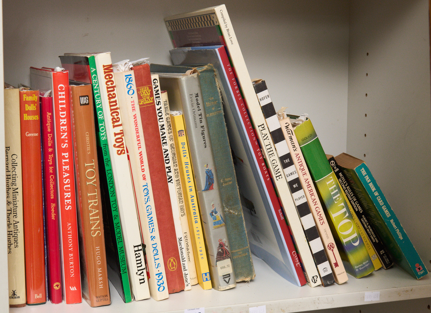 A SHELF OF BOOKS ON TOYS AND GAMES, LEONARD JOEL LOCAL DELIVERY SIZE: SMALL. The Rodney Permezel Collection