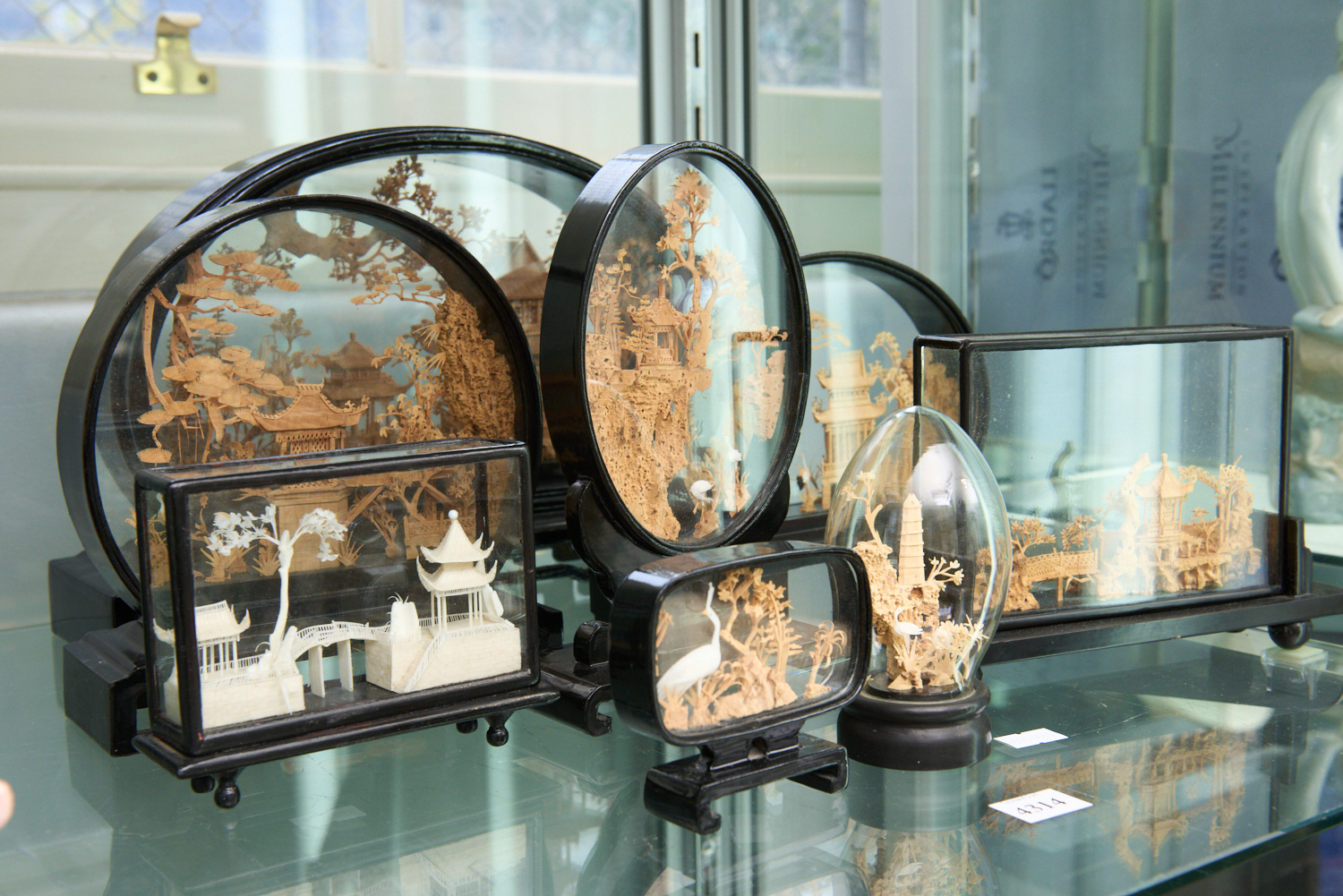 A GROUP OF CHINESE CORK CARVINGS IN CASES, LEONARD JOEL LOCAL DELIVERY SIZE: SMALL. The Rodney Permezel Collection