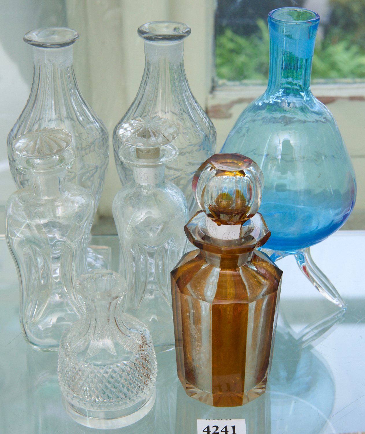 A GROUP OF ASSORTED GLASS DECANTERS AND VASES (A/F), LEONARD JOEL LOCAL DELIVERY SIZE: SMALL. The Rodney Permezel Collection