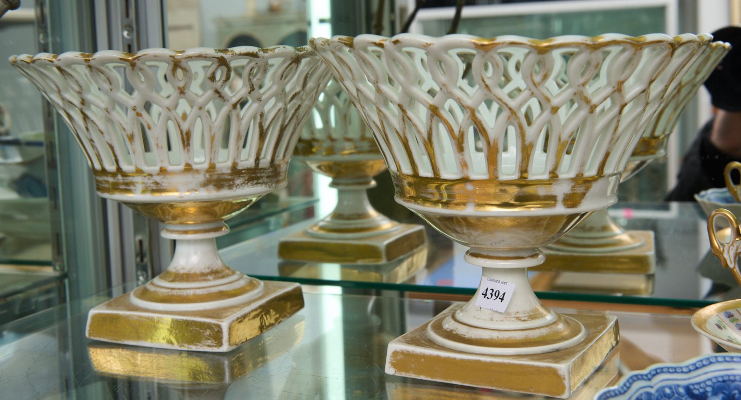 A PAIR OF RETICULATED PORCELAIN COMPORTS H.18.5CM, LEONARD JOEL LOCAL DELIVERY SIZE: SMALL. The Rodney Permezel Collection