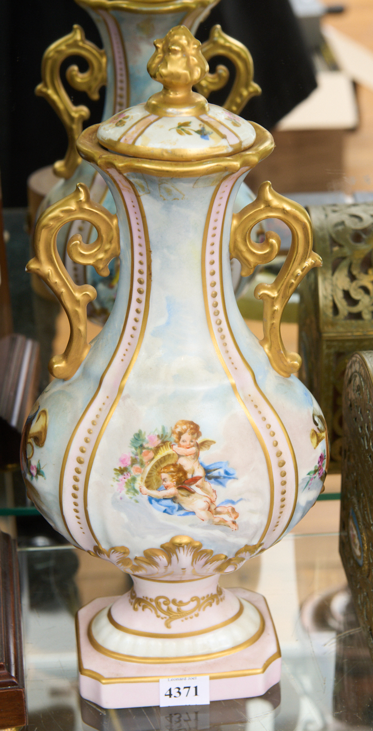 A PORCELAIN LIDDED VASE WITH CHERUB MOTIFS (WORN MARK TO BASE) H.35CM, LEONARD JOEL LOCAL DELIVERY SIZE: SMALL. The Rodney Permezel Collection