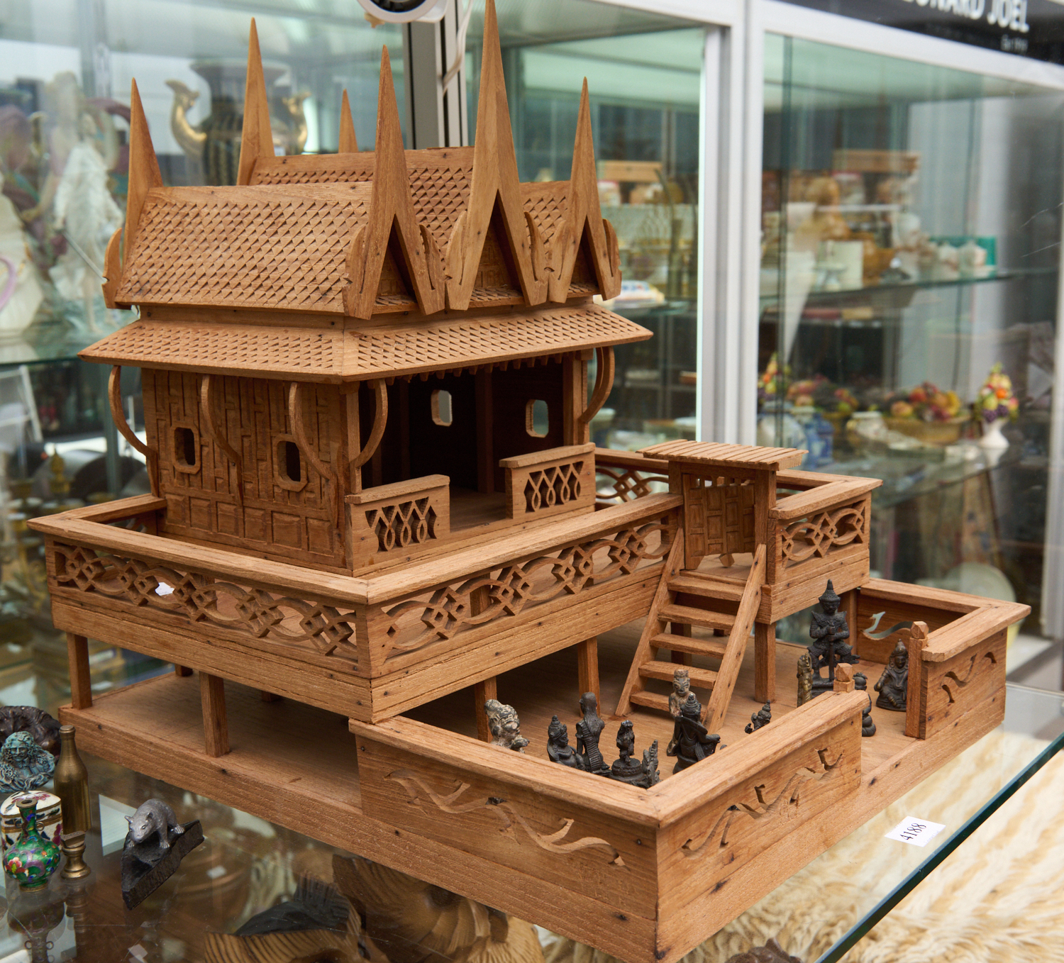 A THAI TEMPLE MODEL WITH SMALL METAL FIGURES L.36CM, LEONARD JOEL LOCAL DELIVERY SIZE: SMALL