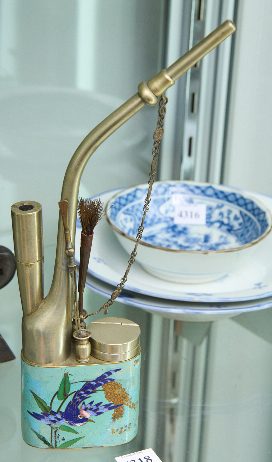 A CLOISONNE OPIUM PIPE (A/F REPAIRED) H.27CM, LEONARD JOEL LOCAL DELIVERY SIZE: SMALL