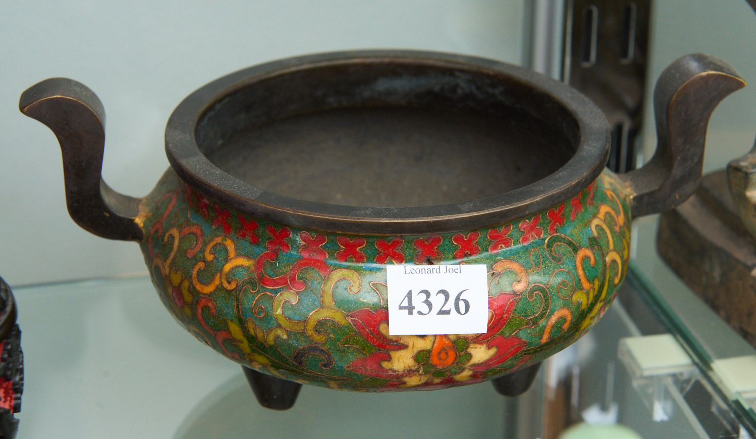 A CLOSIONNE ON BRONZE CENSOR (14 CM W), LEONARD JOEL LOCAL DELIVERY SIZE: SMALL