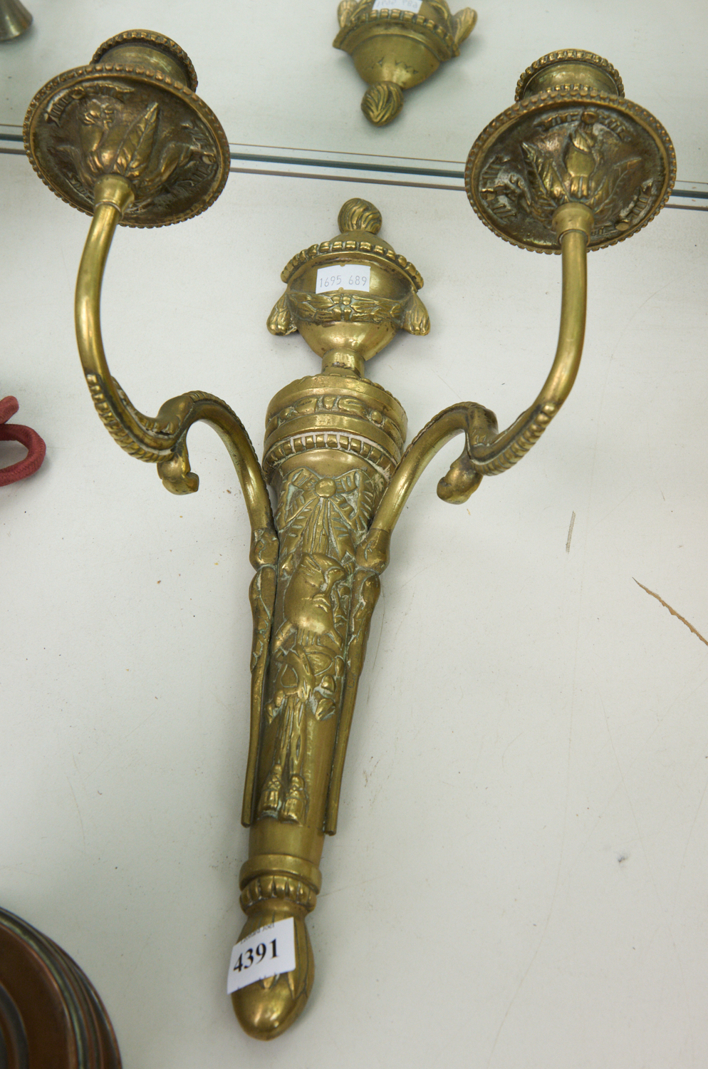 AN ANTIQUE TWO SCONCE BRASS WALL SCONCE (36 CM H), LEONARD JOEL LOCAL DELIVERY SIZE: SMALL. The Rodney Permezel Collection