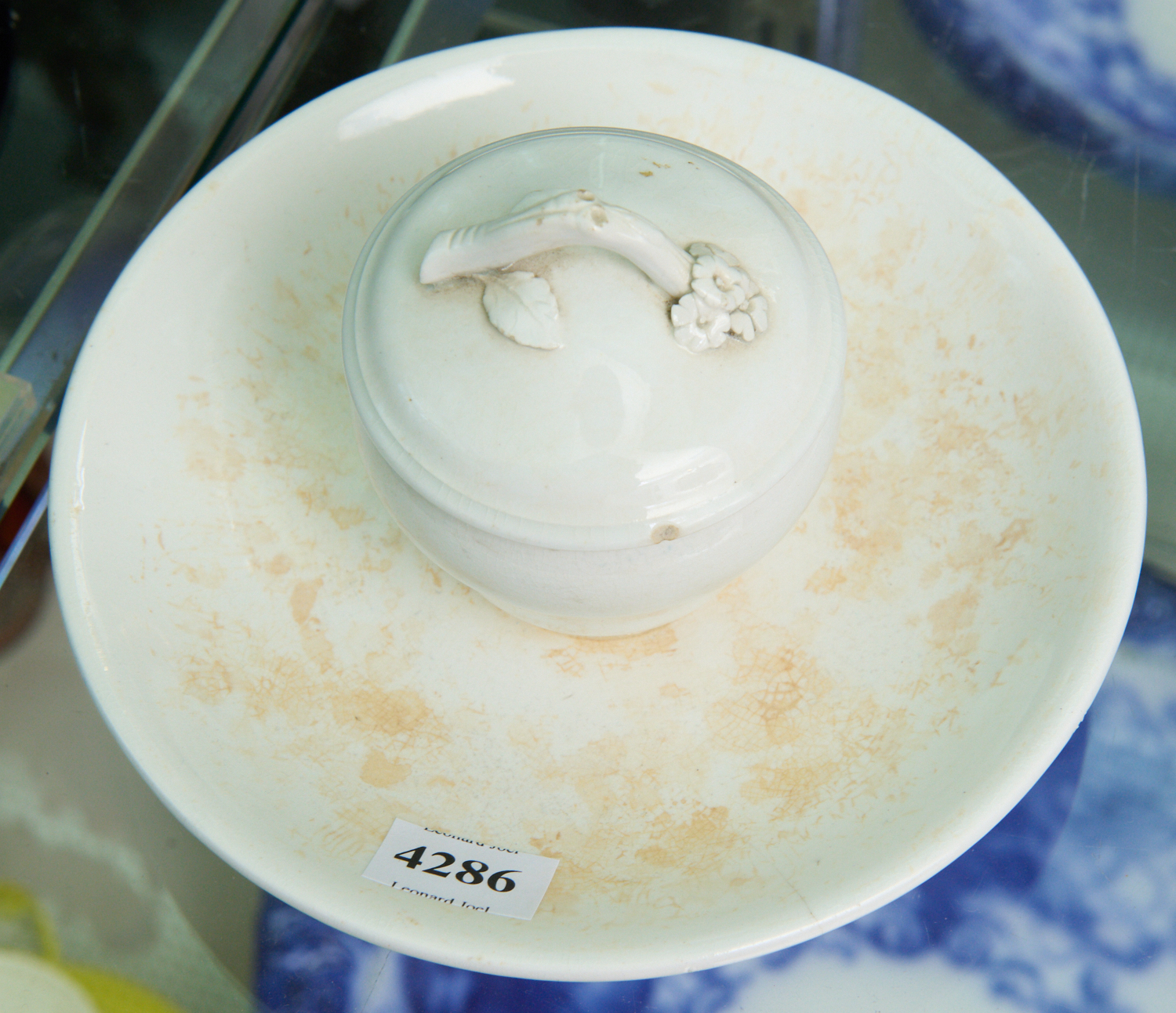 A PORCELAIN INKWELL (17 CM D) (A/F), LEONARD JOEL LOCAL DELIVERY SIZE: SMALL. The Rodney Permezel Collection