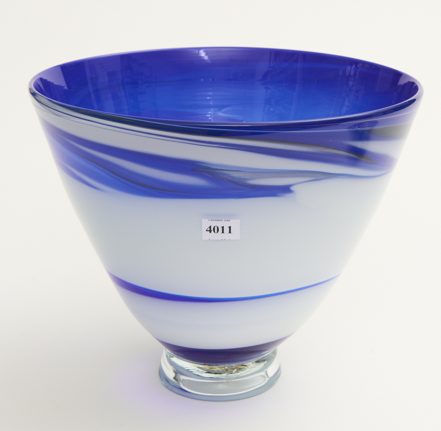 A JAMES MCMURTIE BLUE GLASS BOWL DIA.29CM, LEONARD JOEL LOCAL DELIVERY SIZE: SMALL