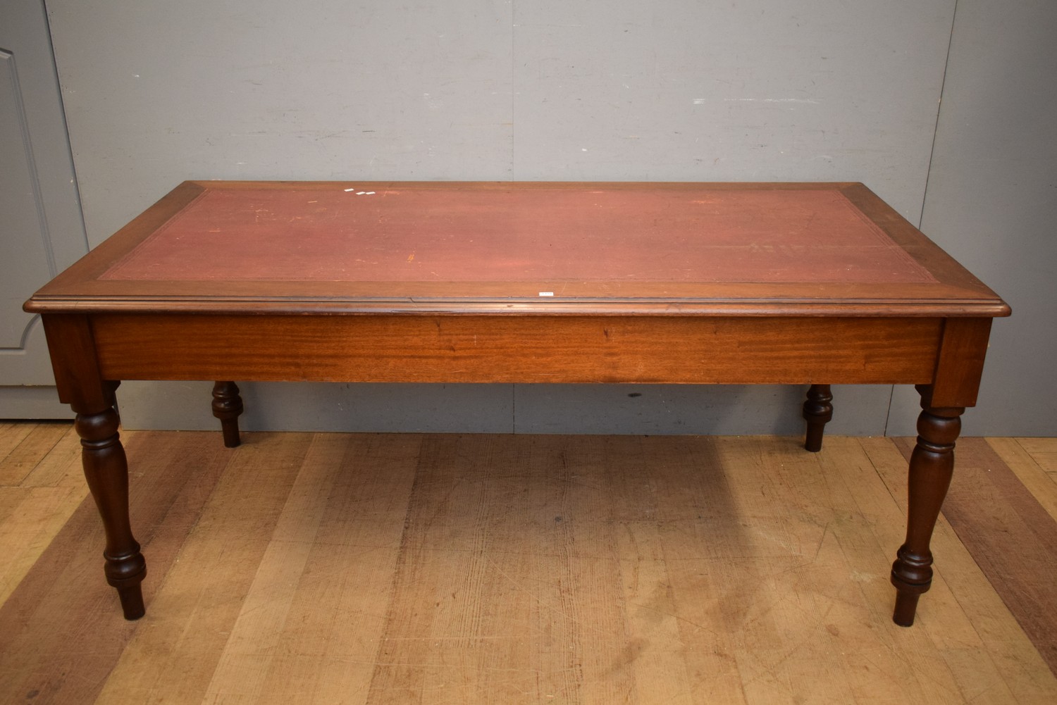 A VICTORIAN LEATHER INSET WRITING DESK (A/F) ( 78H X 184W X 91D CM) (PLEASE NOTE THIS HEAVY ITEM MUST BE REMOVED BY CARRIERS AT THE CUSTOMER'S EXPENSE. LEONARD JOEL STAFF CANNOT ASSIST CARRYING THIS ITEM) (X-LARGE ITEM)
