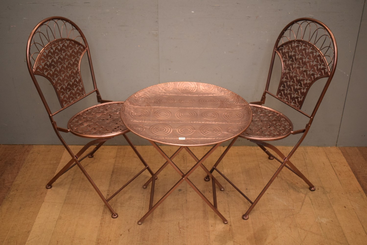 A THREE PIECE OUTDOOR SETTING (A/F) ( 56H X 60 DIAMETER CM) (LEONARD JOEL DELIVERY SIZE: MEDIUM)