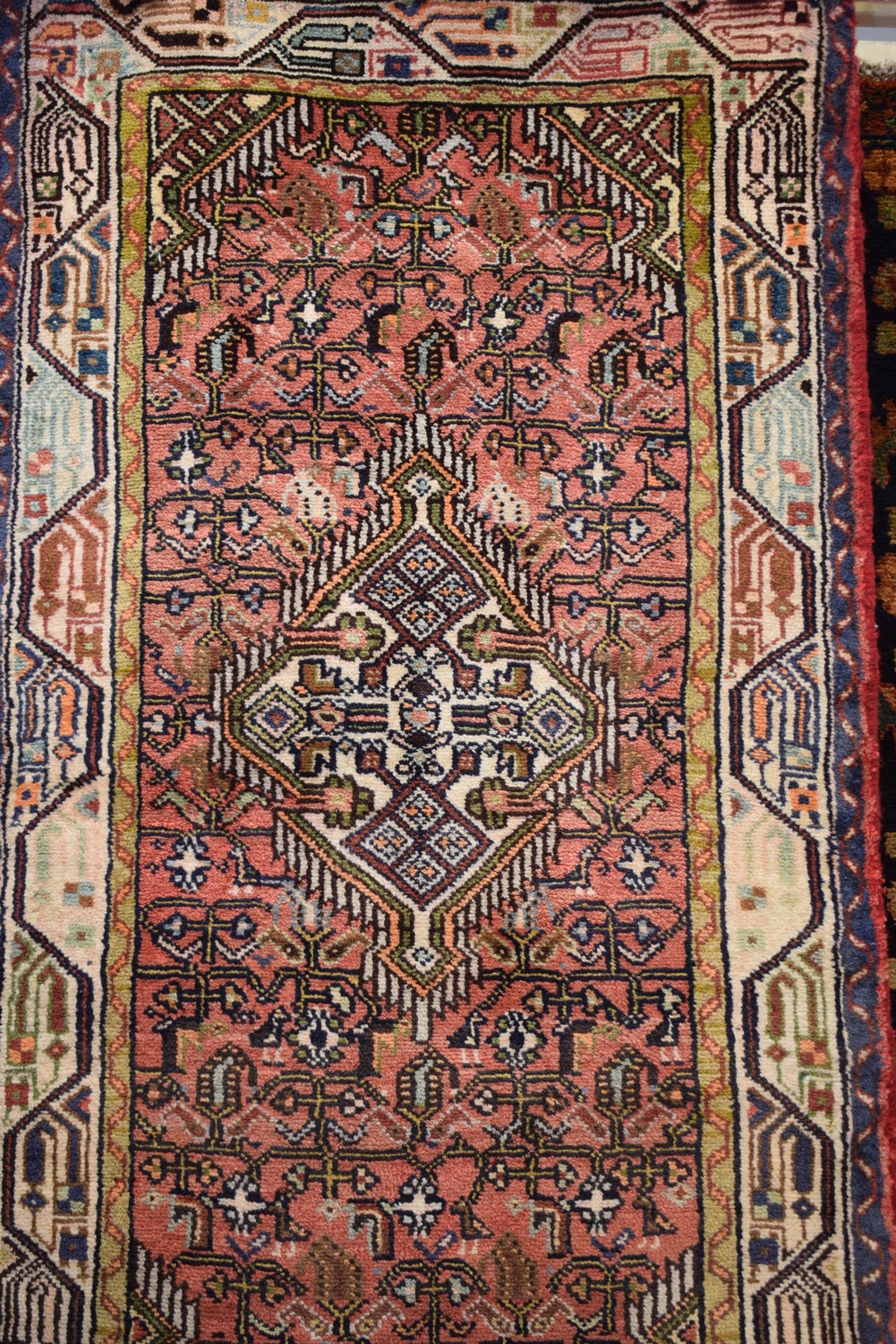 A PERSIAN ENJELAS IN MELLOW COLOURS, 100% WOOL & NATURAL DYES. HAND-KNOTTED VILLAGE WEAVE WITH TRIBAL DESIGN OF A FLORAL MEDALLION IN A FIELD OF HERATI MAHI PATTERNS. CERTIFICATE OF AUTHENTICITY INCLUDED. SIZE: 132X74CM ORIGIN: IRAN - RRP: $600 (LEONARD JOEL DELIVERY SIZE: LARGE)