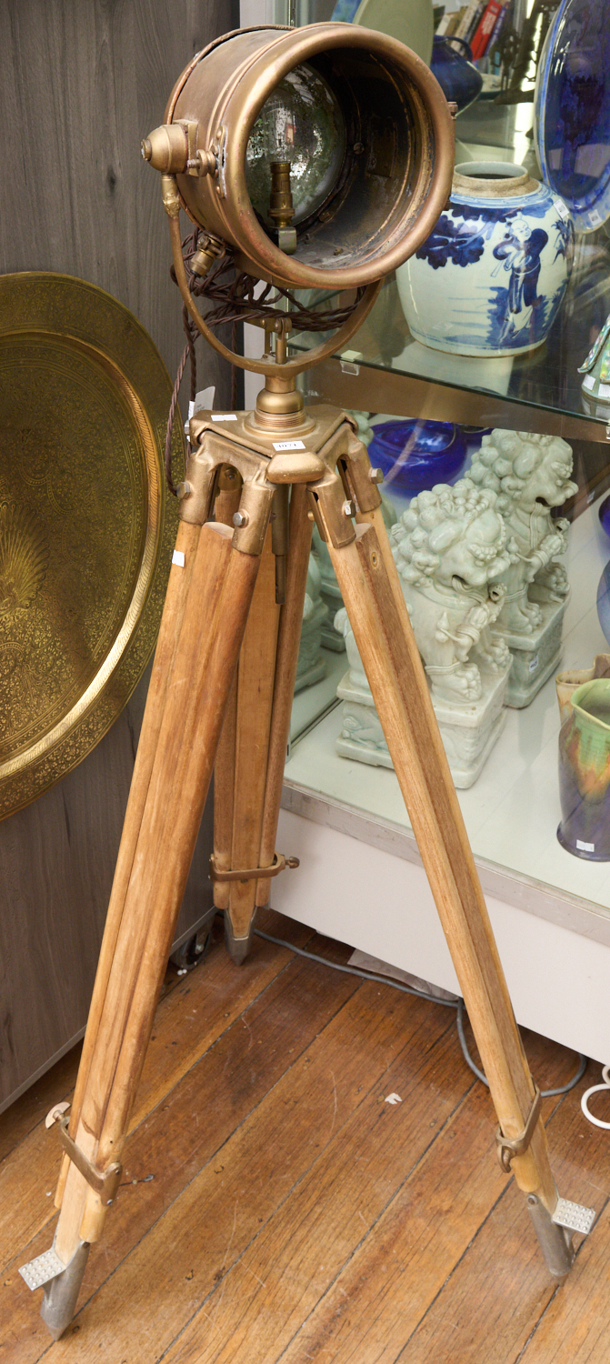 A SHIPS LAMP ON TRIPOD BASE H.135CM, LEONARD JOEL LOCAL DELIVERY SIZE: MEDIUM