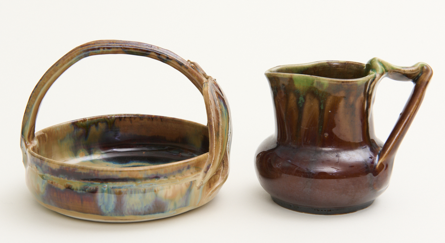 A REMUED POTTERY JUG TOGETHER WITH ANOTHER H.12CM, LEONARD JOEL LOCAL DELIVERY SIZE: SMALL