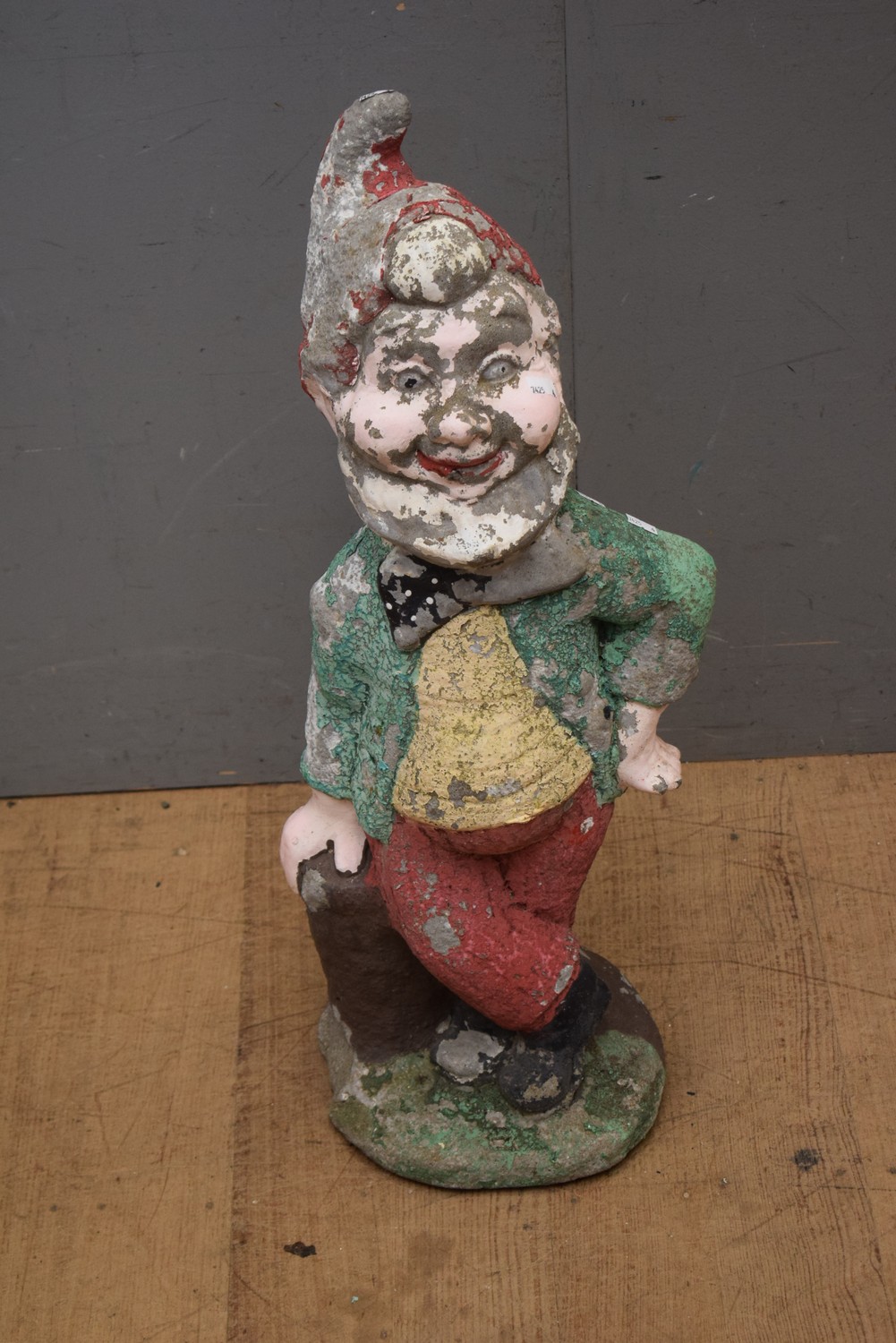 A CONCRETE GARDEN GNOME (A/F) (73H CM) (PLEASE NOTE THIS HEAVY ITEM MUST BE REMOVED BY CARRIERS AT THE CUSTOMER'S EXPENSE. LEONARD JOEL STAFF CANNOT ASSIST CARRYING THIS ITEM) (X-LARGE ITEM)