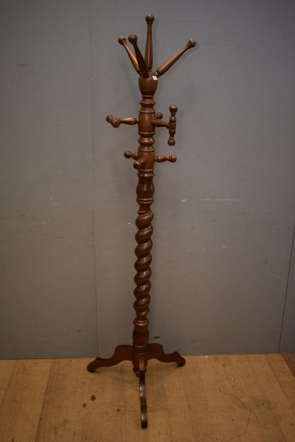 A TURNED TIMBER COAT STAND (A/F) (186H x 60D CM) (LEONARD JOEL DELIVERY SIZE: LARGE)