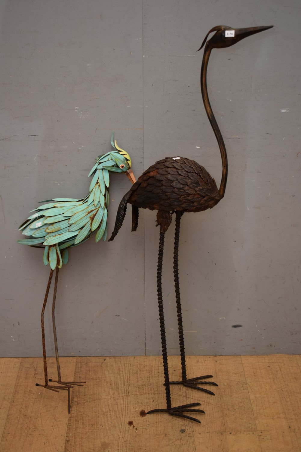 TWO METAL GARDEN BIRD FIGURES (A/F) (132H CM) (LEONARD JOEL DELIVERY SIZE: LARGE)