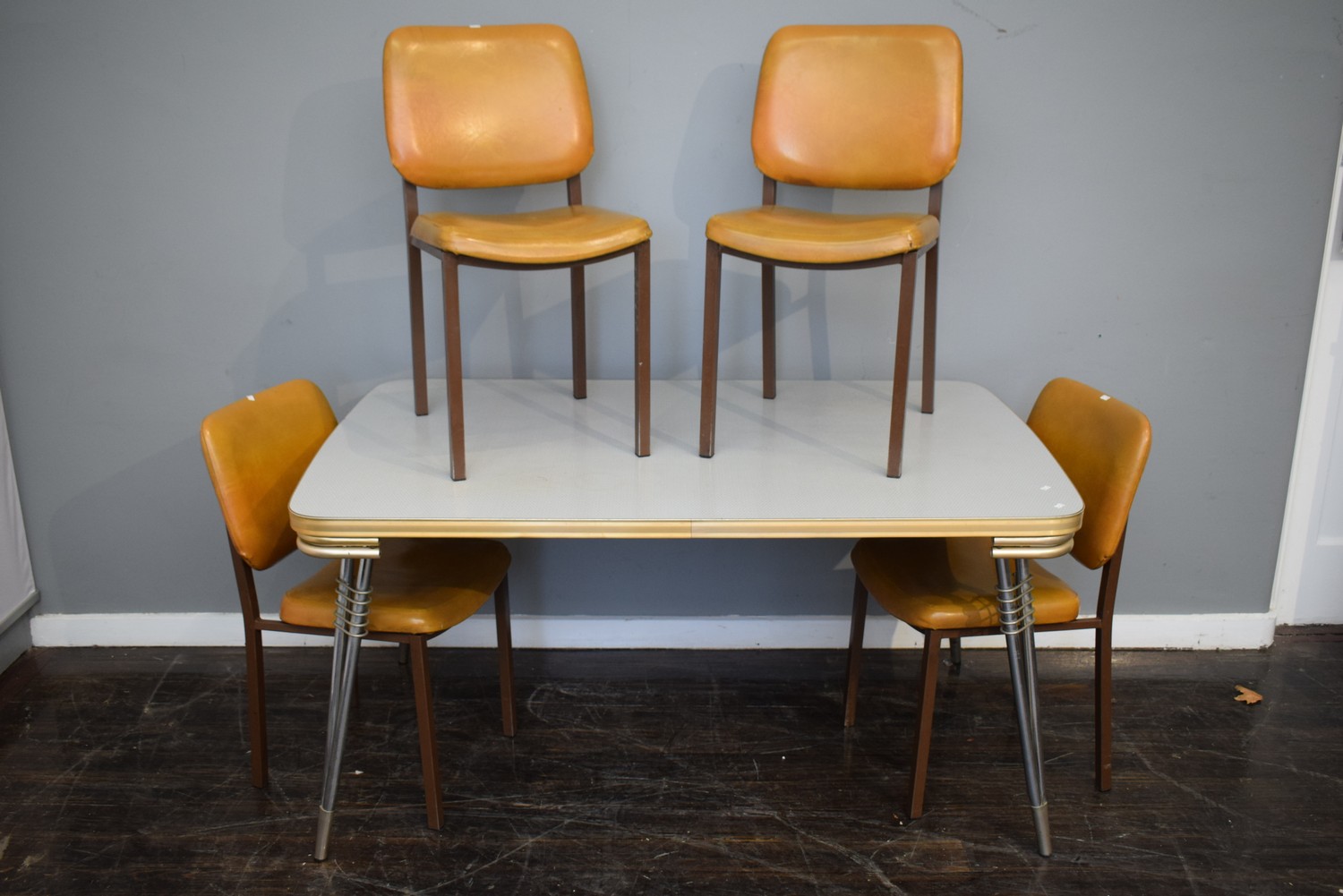 A MID-CENTURY FIVE PIECE DINING SETTING (A/F) (H76 X W152 X D91 CM) (PLEASE NOTE THIS HEAVY ITEM MUST BE REMOVED BY CARRIERS AT THE CUSTOMER'S EXPENSE. LEONARD JOEL STAFF CANNOT ASSIST CARRYING THIS ITEM) (X-LARGE ITEM)