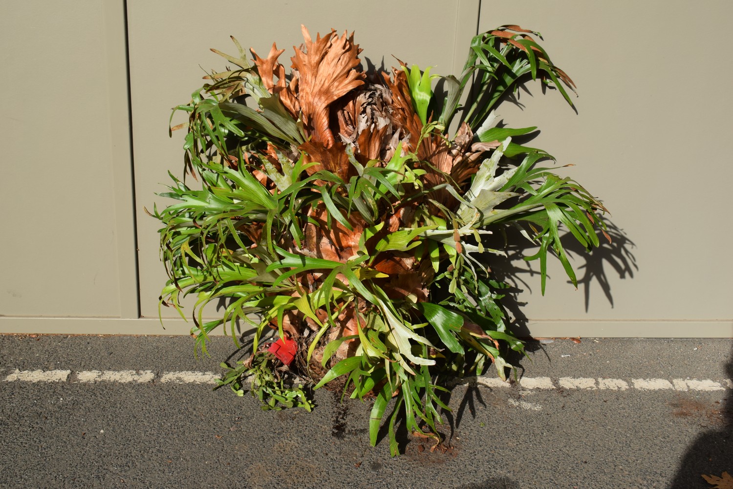 A SUBSTANTIAL STAG FERN (H115 X W145 X D50 CM) (PLEASE NOTE THIS HEAVY ITEM MUST BE REMOVED BY CARRIERS AT THE CUSTOMER'S EXPENSE. LEONARD JOEL STAFF CANNOT ASSIST CARRYING THIS ITEM) (X-LARGE ITEM)