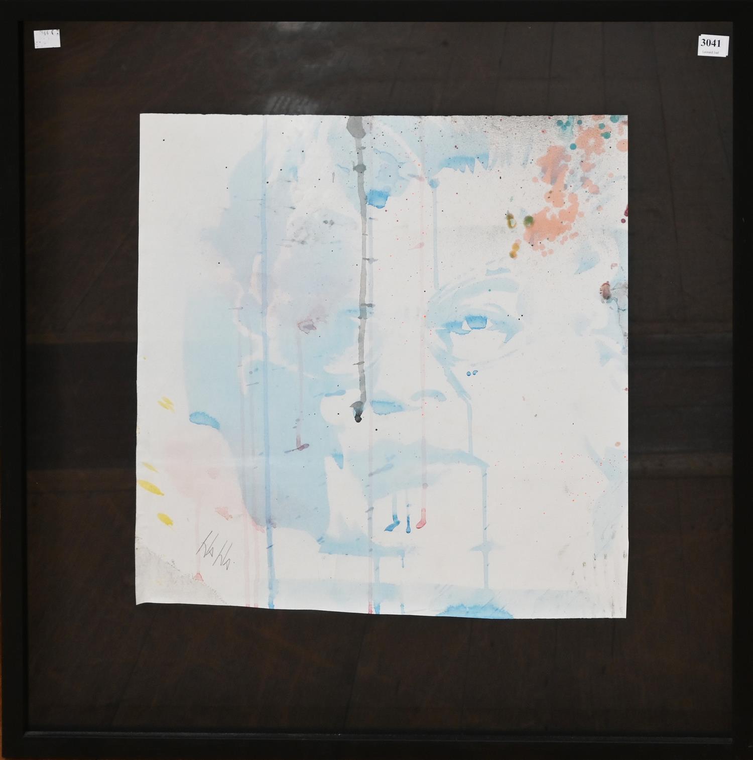 HA-HA, THE FACE, WATERCOLOUR, STENCIL AND MIXED MEDIA ON PAPER, 45 X 44CM, FRAME SIZE: 68 X 68CM