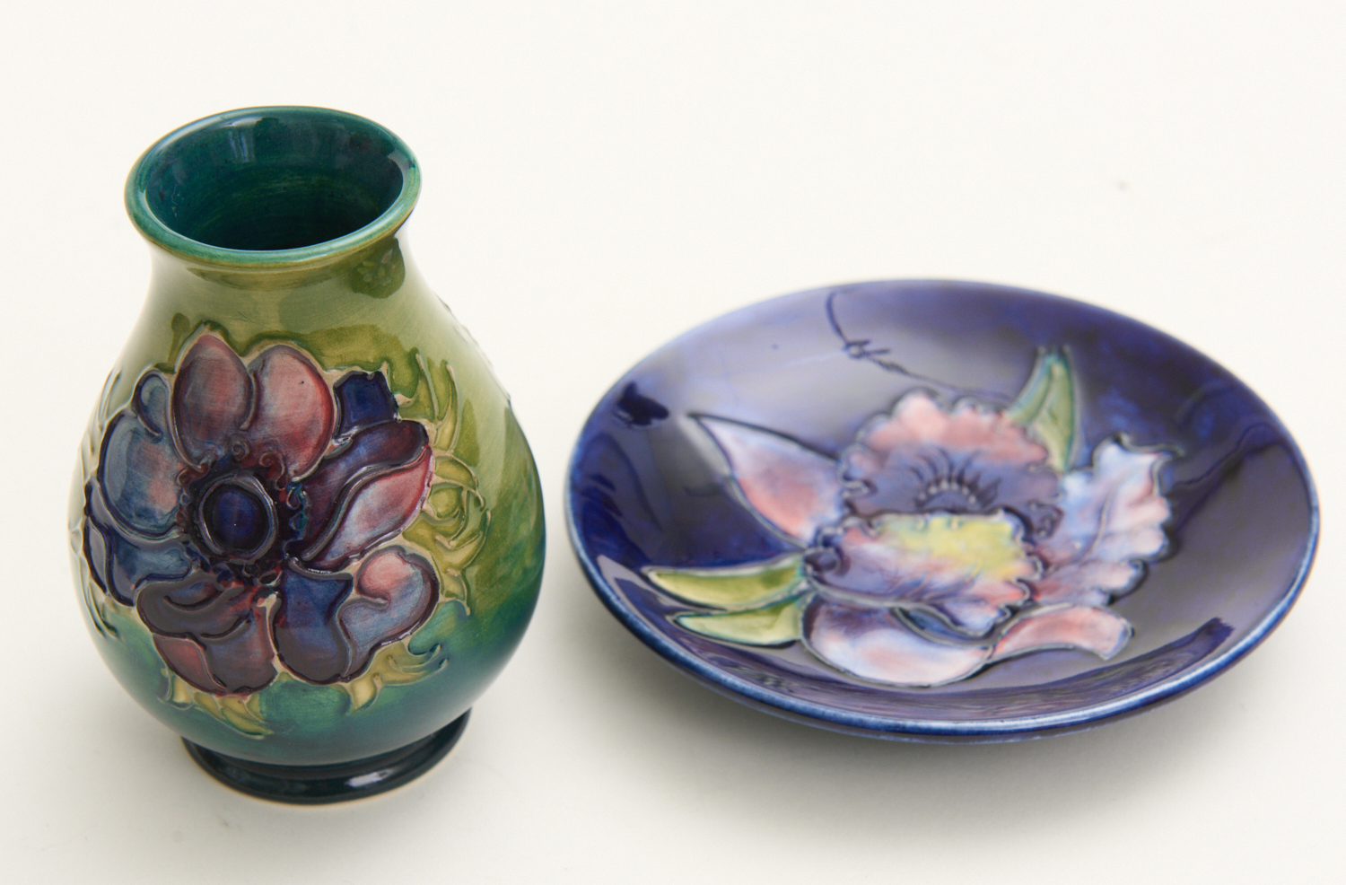 A MOORCROFT VASE TOGETHER WITH A PLATE (10 CM H), LEONARD JOEL LOCAL DELIVERY SIZE: SMALL
