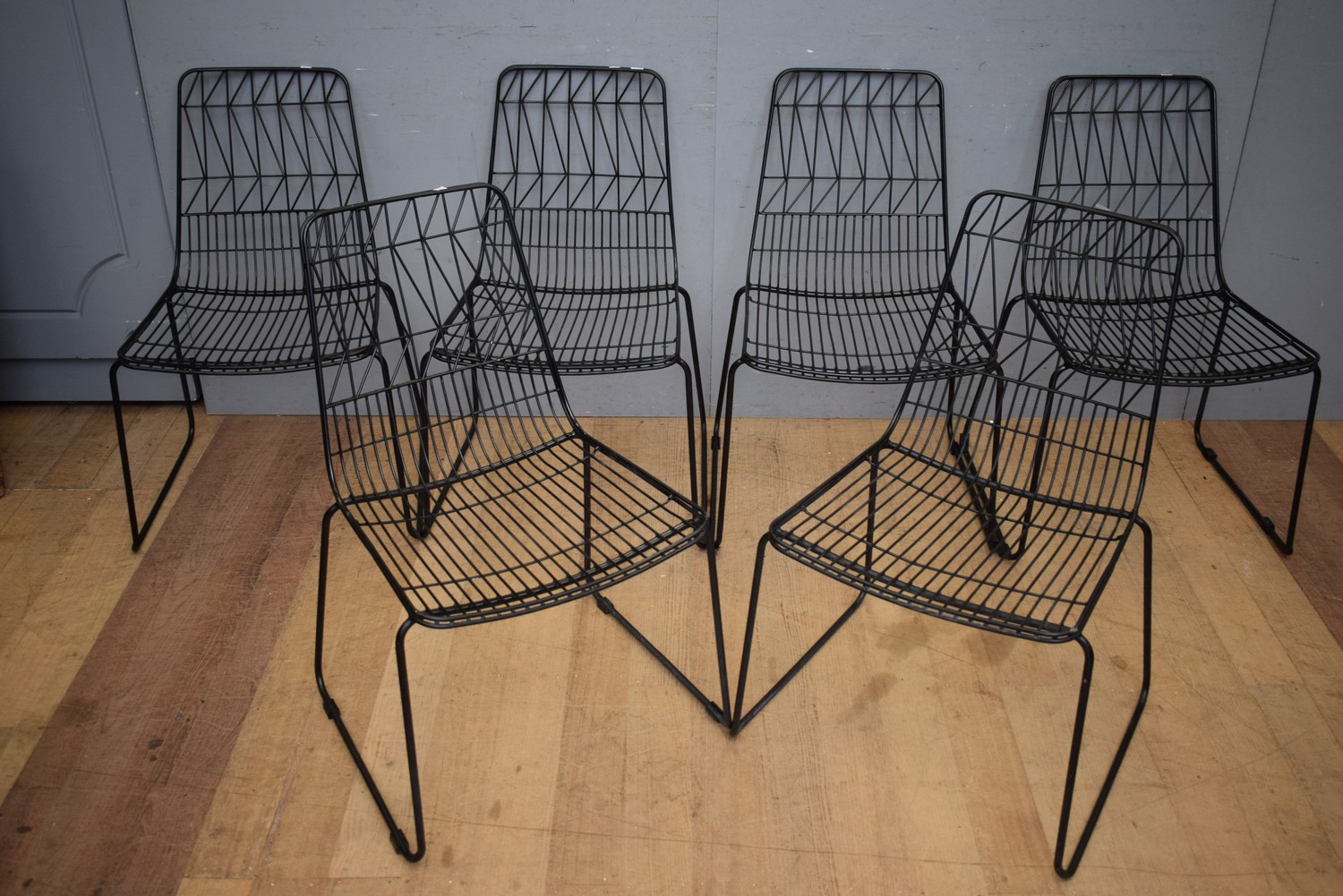 A SET OF SIX MID-CENTURY STYLE METAL CHAIRS (82H x 52W x 52D CM) (LEONARD JOEL DELIVERY SIZE: LARGE)