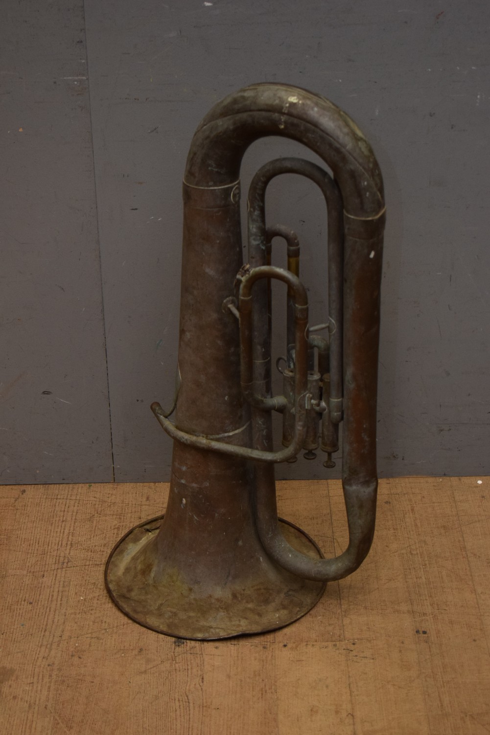 A BRASS TUBA (A/F) (85H x 37W CM) (LEONARD JOEL DELIVERY SIZE: LARGE)